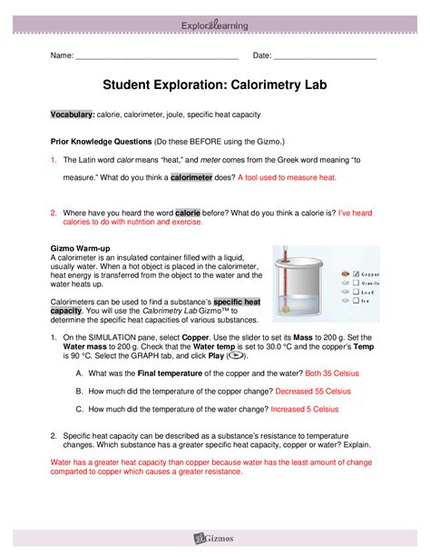 Download Explorelearning Student Exploration Calorimetry Lab Answer Key PDF